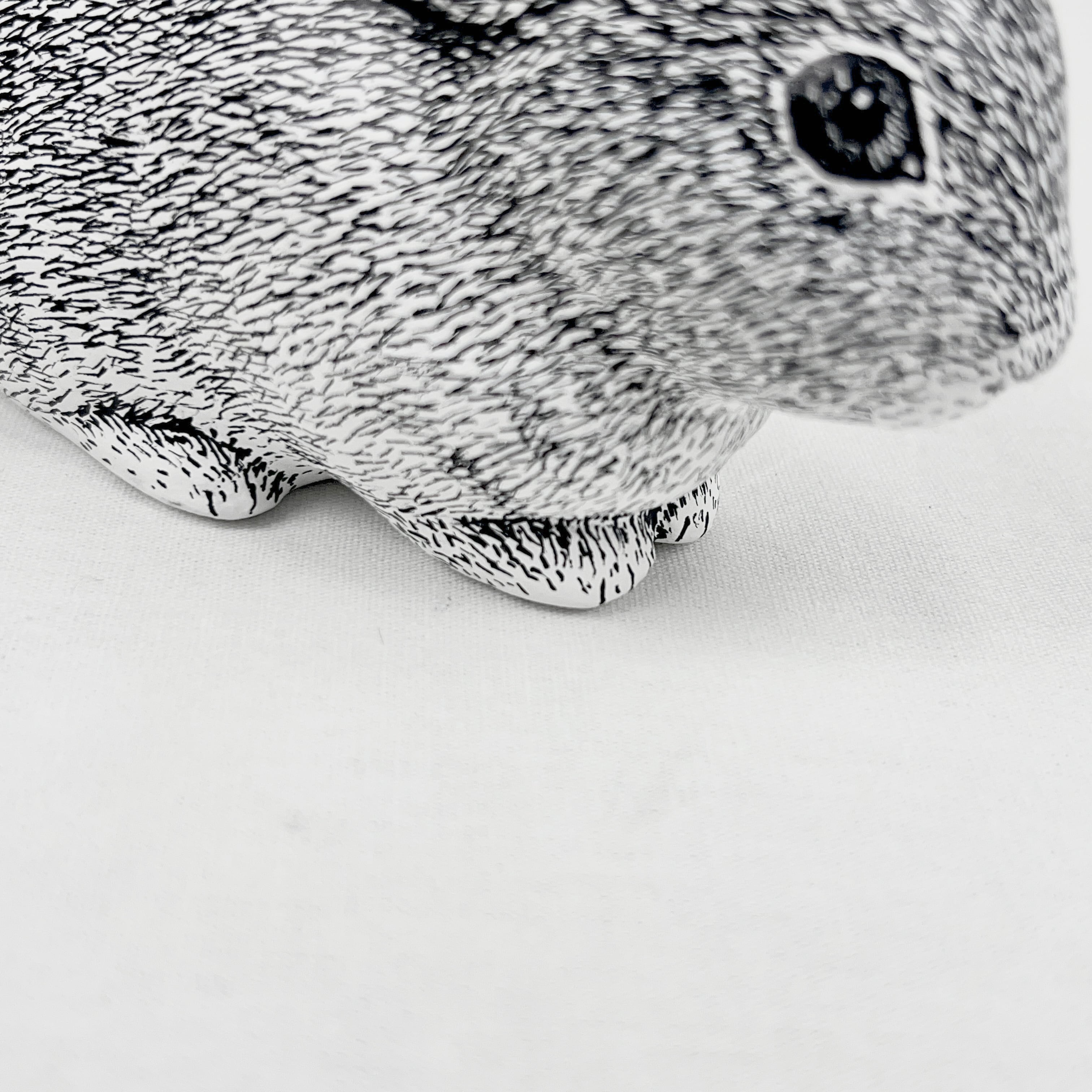 Each piece is created using a mold, but the patterns and facial expressions are hand-painted individually, making every rabbit one of a kind.
